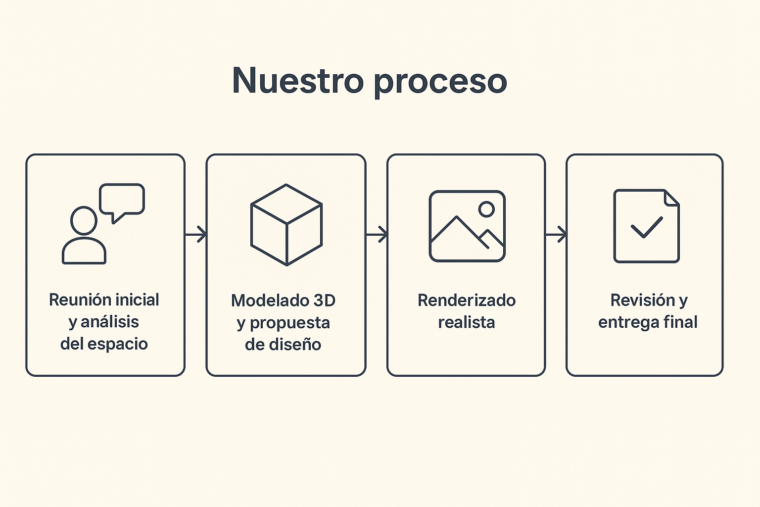 Cada proyecto se desarrolla con un enfoque profesional, cuidando la precisión de las proporciones, la iluminación natural y los materiales, para reflejar con exactitud cómo se verá el espacio terminado.